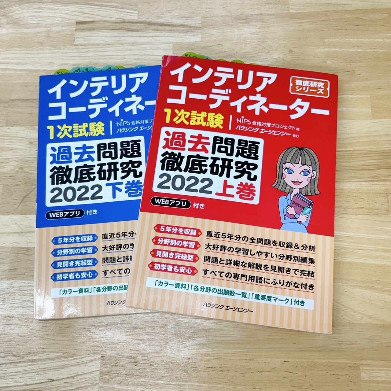 インテリアコーディネーター資格試験を受けてみるか?と再度興味を持ち、メルカリで2022年の過去問題集の上下巻を買ってみる。